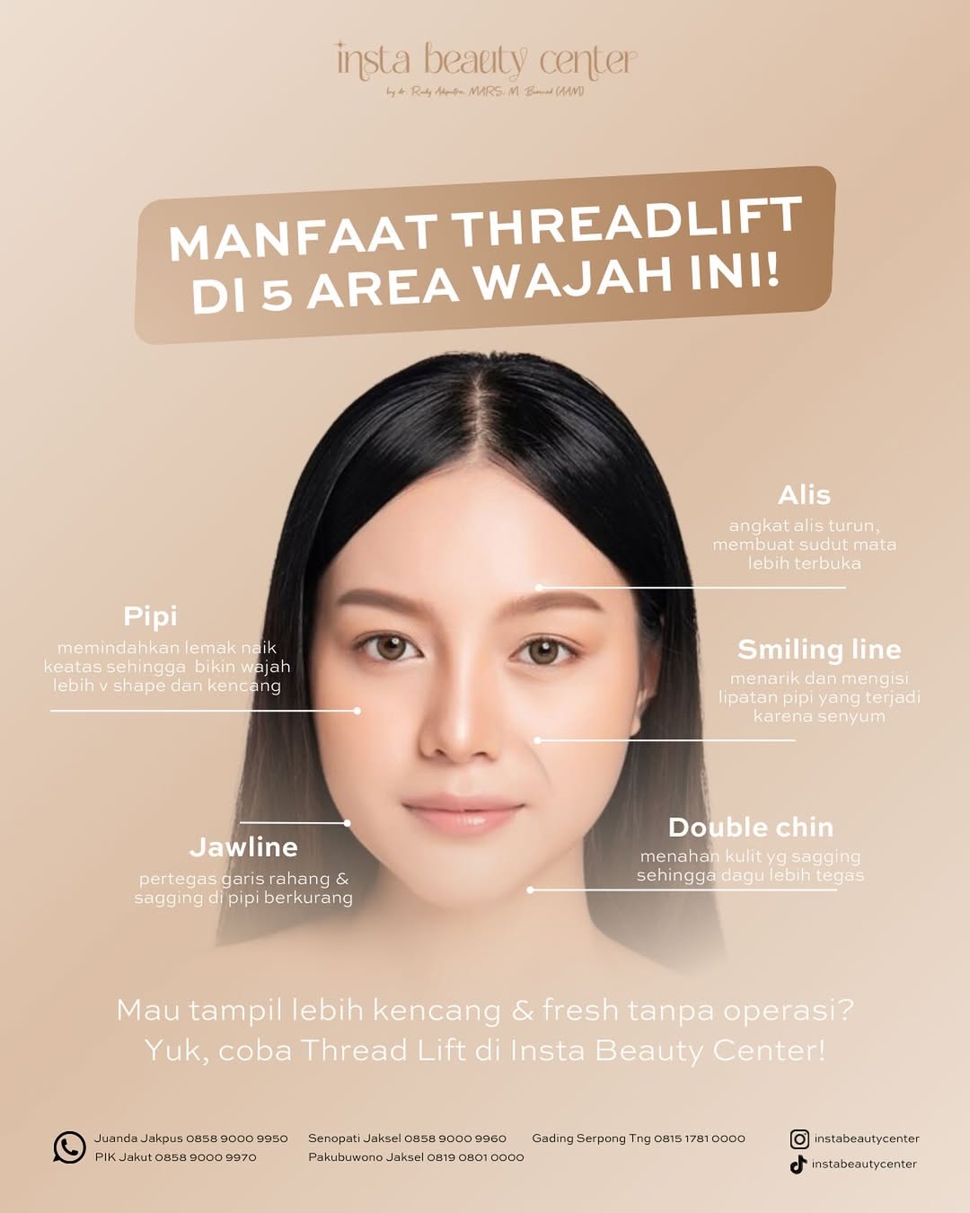 Dengan memahami kelima area ini, Anda dapat berdiskusi lebih cerdas dengan dokter estetika Anda. Ingat, Thread Lift adalah investasi pada struktur wajah Anda—memberikan lift instan hari ini dan stimulasi kolagen jangka panjang untuk masa depan.