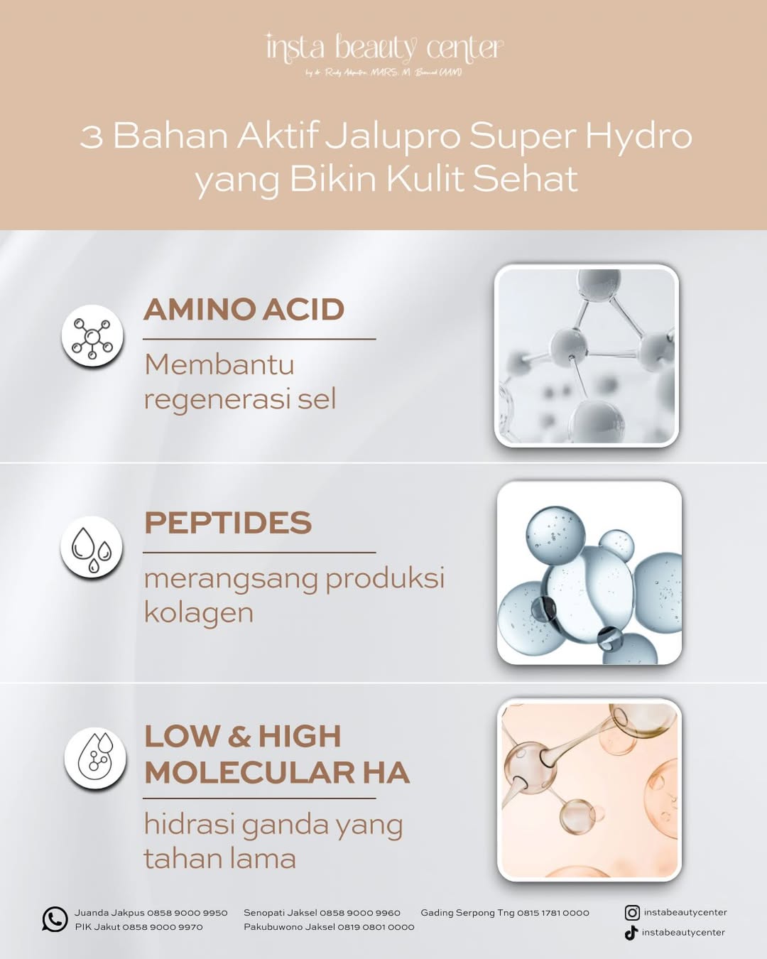 Siap untuk upgrade skin barrier Anda? Jangan biarkan kulit Anda “kelaparan”. Berikan nutrisi terbaik dengan Jalupro Super Hydro di Insta Beauty Center. Karena kulit yang glowing dari dalam adalah cerminan dari sel yang sehat dan terhidrasi dengan sempurna.